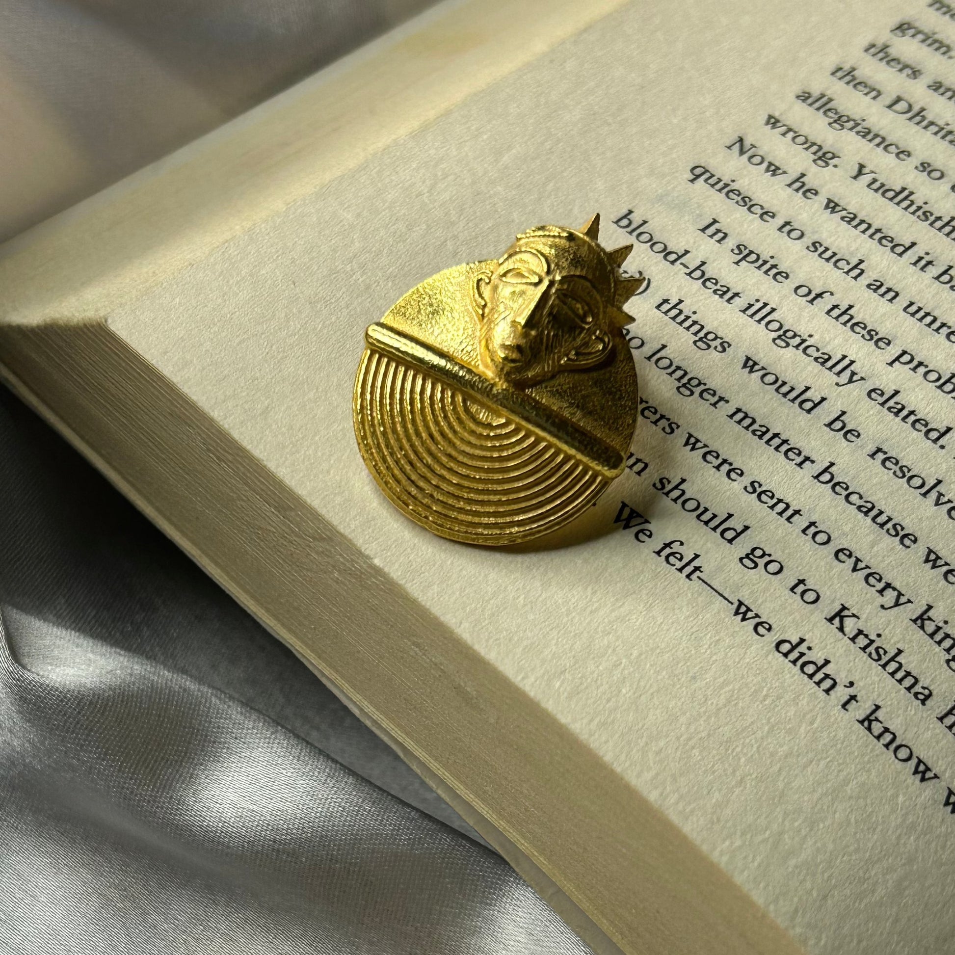 This beautiful ring is handcrafted in bronze and plated in 22k gold, inspired by the motifs and forms of Akan art and crafts.