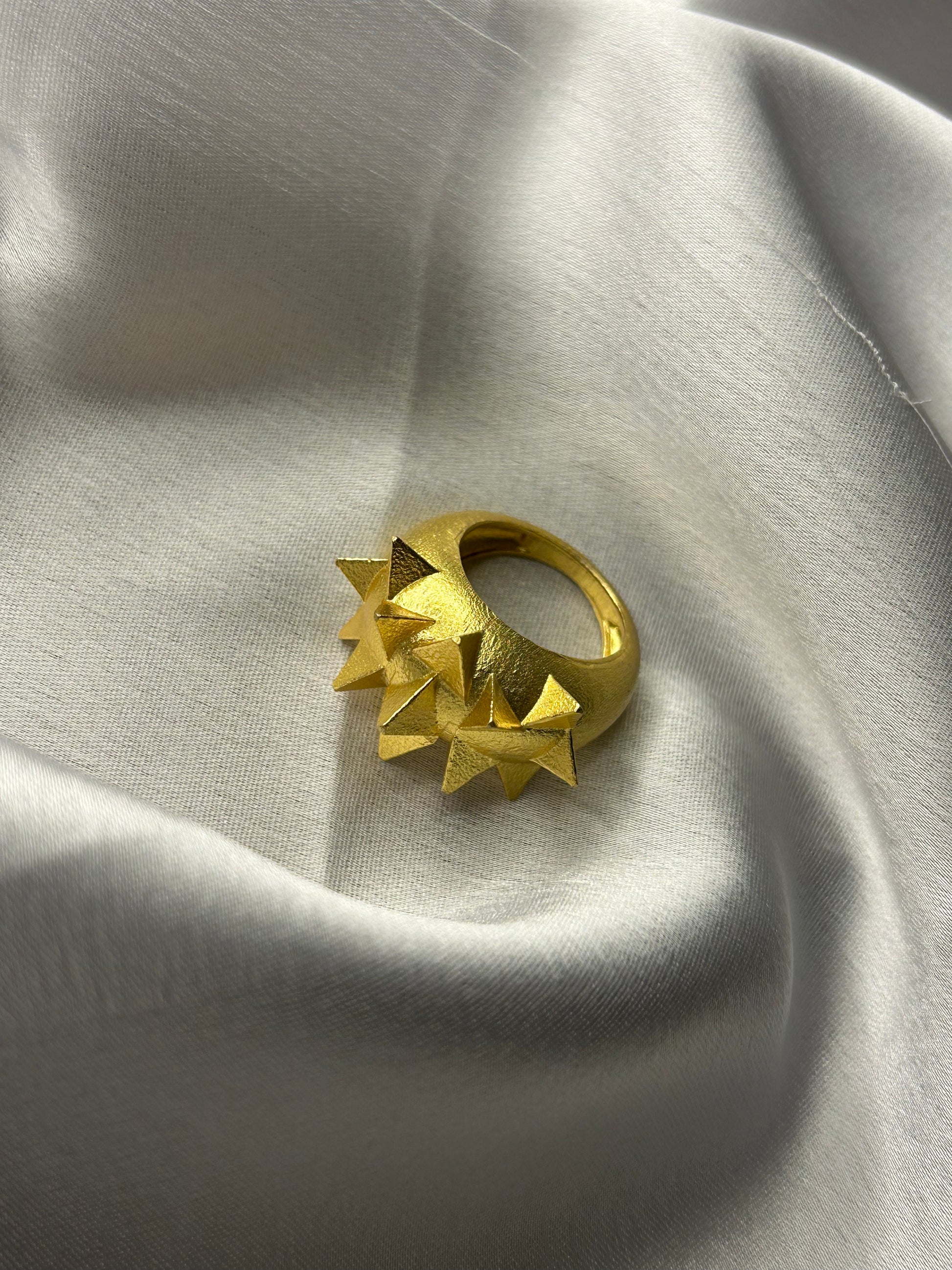 This beautiful ring is handcrafted in bronze with 22k gold plating, inspired by the art and craft practices of the Akan people. Pair with the "NINJAA RING" from the ABRAMMUO collection for a maximalist statement look!