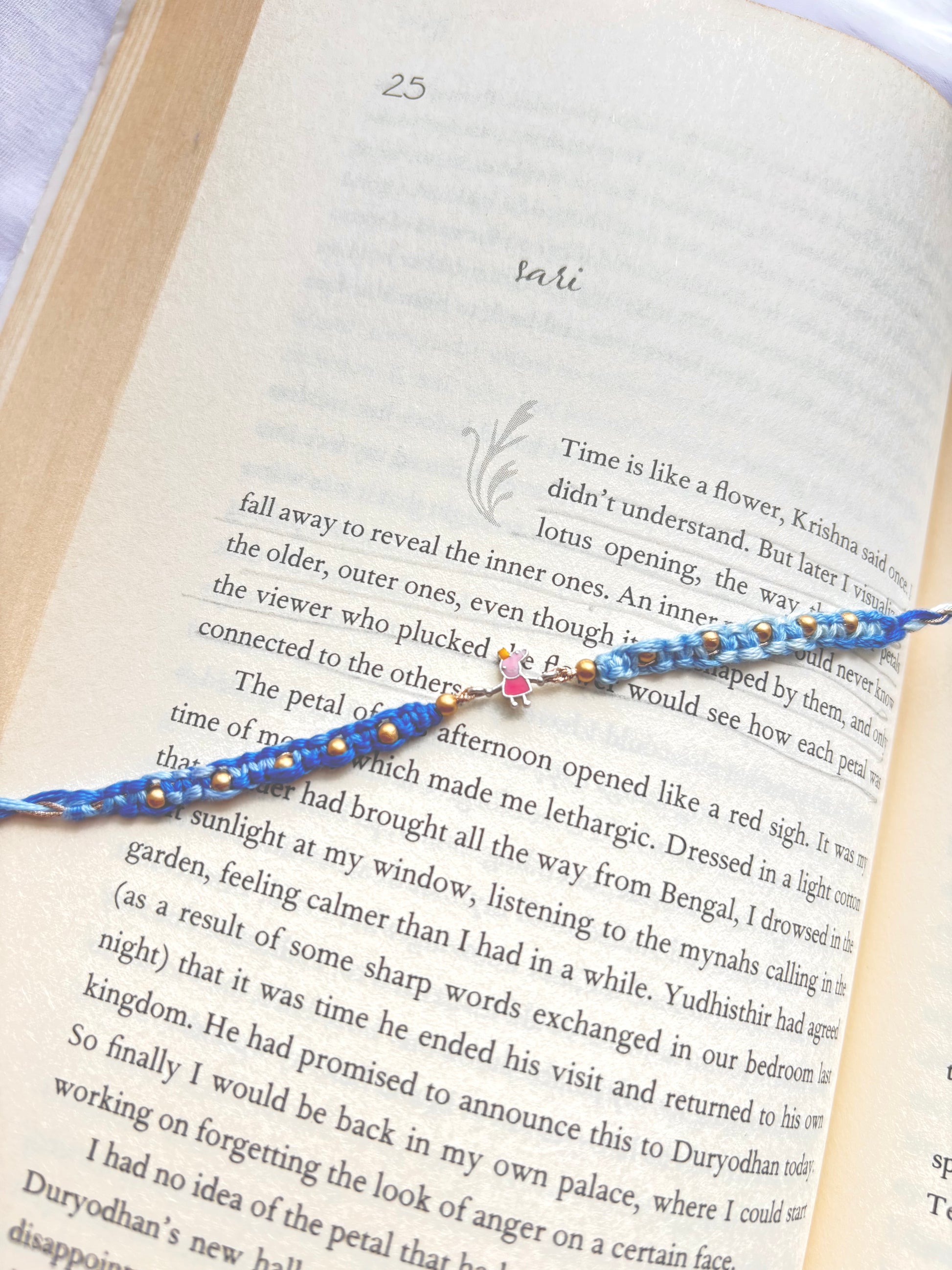 Make Rakshabandhan extra fun with the adorable Peppa Pig Rakhi—a playful blue braided thread featuring everyone’s favorite cartoon pig in a pink enamel charm. Perfect for little brothers, cousins, or the sibling who grew up watching Peppa, George, and muddy puddles.