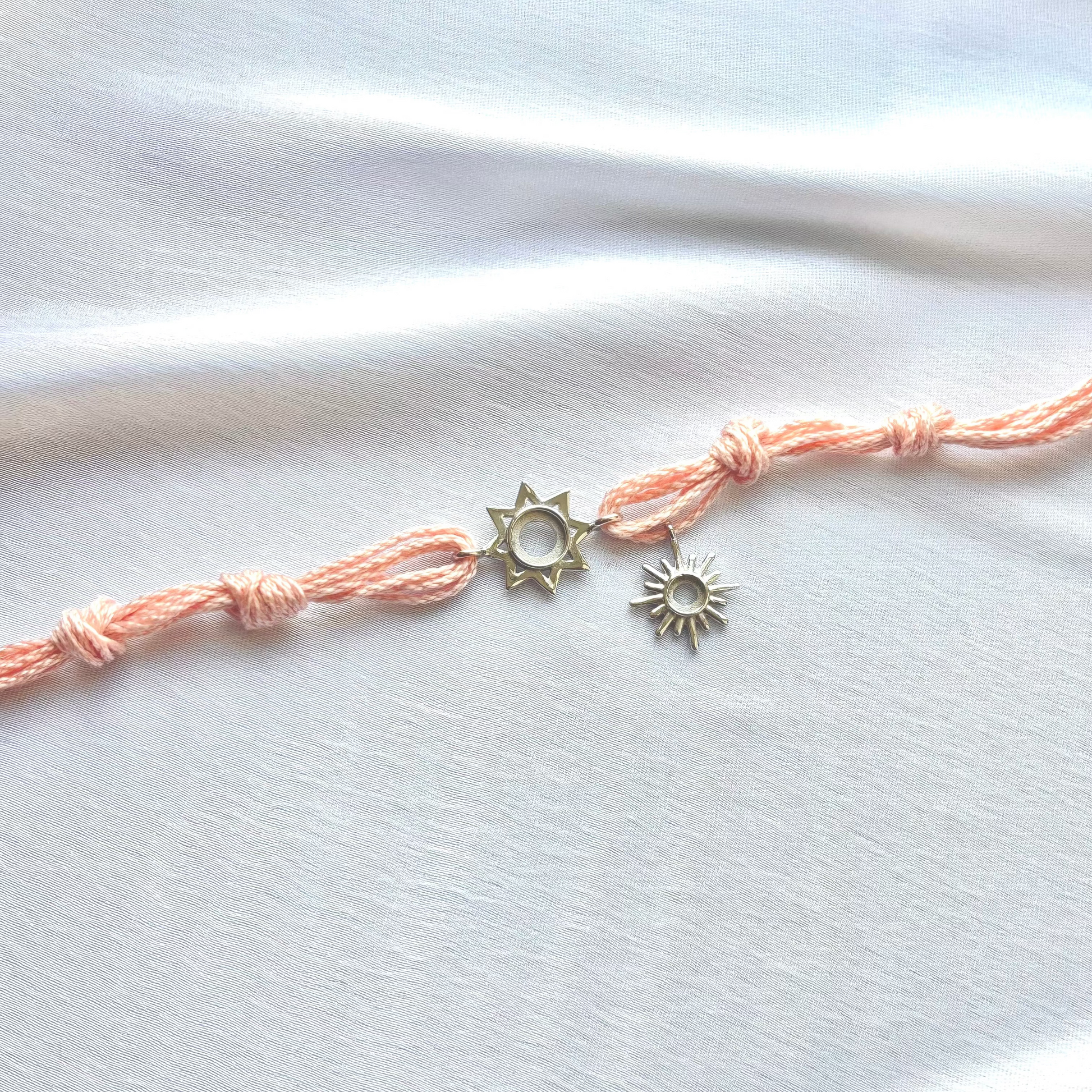 Celebrate Raksha Bandhan with simplicity and grace. Our Suryakiran Rakhi combines a pure silver centerpiece etched with a delicate charm—a symbol of purity and eternal connection—with soft, elegant threads that make it perfect for brothers who appreciate minimal, thoughtful design.