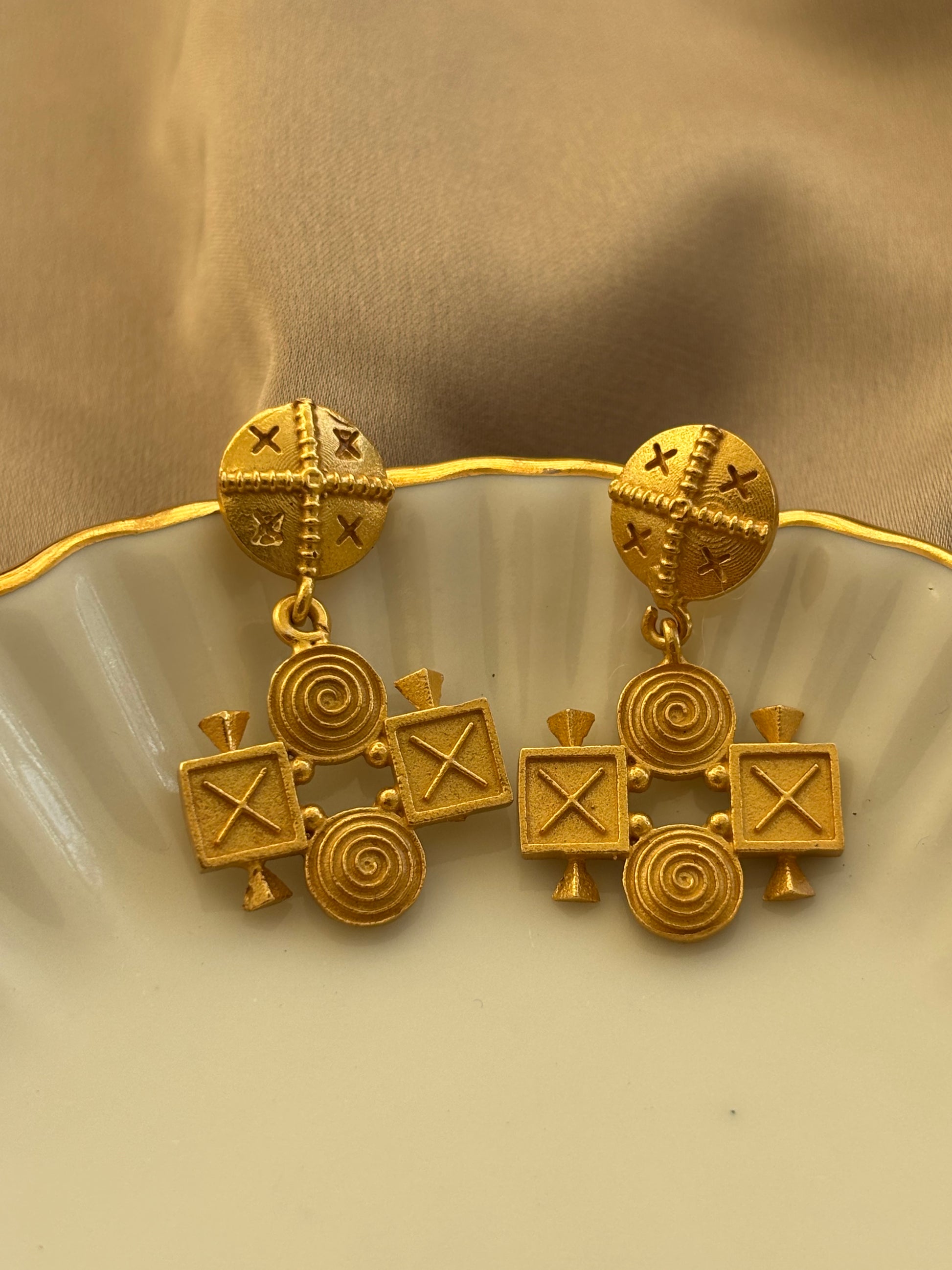 It is plated with 18k gold and is adjustable. Our designs are handmade, and each piece is therefore unique by its imperfect curves.