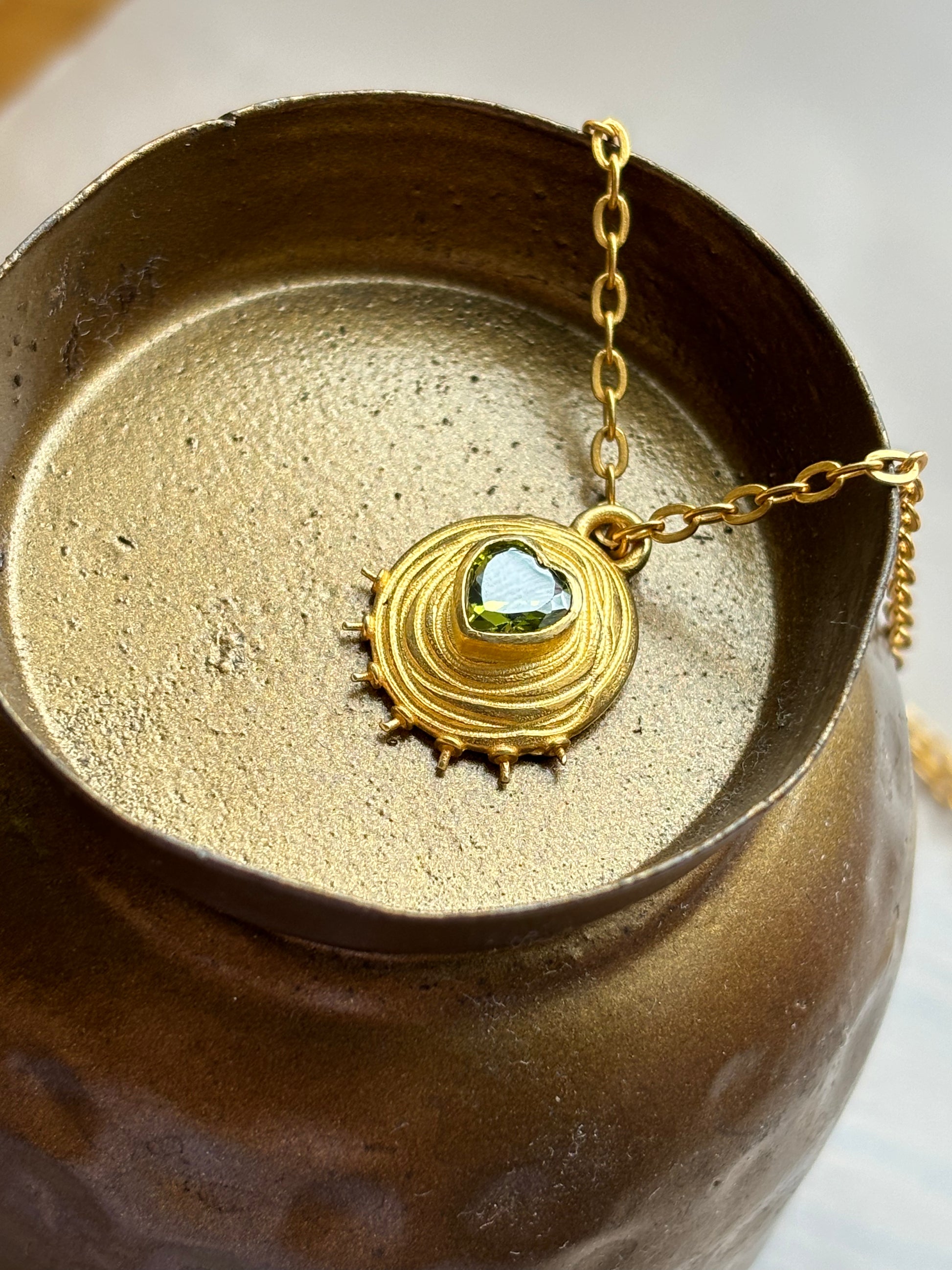 This delicate, handcrafted piece will be loved by all generations. A heart stone with these art details will light up your look in no time!